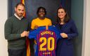 La futbolista nigeriana, de 24 anys, ha arribat aquest dijous al matí a Barcelona. Posteriorment, ha realitzat les pertinents proves mèdics i ha signat el contracte al despatx de Presidència del Camp Nou, amb la presència de la directiva responsable de la secció, Maria Teixidor, i del mànager esportiu, Markel Zubizarreta.