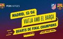 El FC Barcelona, a través d'FCBViatges, ofereix uns preus molt econòmics per a tots els socis i aficionats que vulguin viatjar amb autocar i tren a Madrid per presenciar el partit de tornada dels quarts de final de l’Atlètic de Madrid-FC Barcelona, que se celebrarà el dimecres 13 d’abril (20.45 hores).