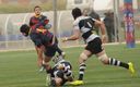 Tot i que el Barça coneixia la dificultat del partit davant del líder, el matx va començar de manera molt positiva per als interessos culers. Al minut sis Juan Pablo Garcia va anotar un assaig que va avançar els nois de Ricardo Martinena. Els blaugranes van mantenir-se per davant al marcador els primers 30 minuts de joc, però un assaig transformat passada la mitja hora i un altre al 37 amb la transformació van deixar el marcador en 12-5 abans de marxar als vestidors. Abans, però, els culers van tenir una oportunitat d’anotar, però la defensa dels locals ho va impedir.