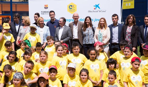Sergio Busquets, migcampista del FC Barcelona; Susila Cruyff, en representació de la Fundació Cruyff; Jaume Giró, director general de la Fundació Bancària ”la Caixa”; Jordi Cardoner, vicepresident primer del FC Barcelona; i Eva Menor, alcaldessa de Badia del Vallès, han inaugurat aquest divendres el Cruyff Court Sergio Busquets, un camp ubicat a la localitat natal del migcampista que promourà l’esport entre els infants i joves de la localitat.