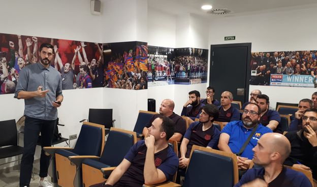 Raúl Entrerríos és jugador del primer equip del Barça d’handbol i a la vegada entrenador nacional d’handbol. La seva llarga i exitosa trajectòria com a jugador, la ha combinat amb la seva formació com a entrenador. Aquesta carrera dual ha estat motiu de poder compartir conceptes tàctics amb els entrenador de la base blaugrana.