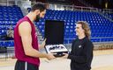 Nikola Mirotic atenia tranquil·lament una entrevista amb la Lliga Endesa aquest dimecres a la tarda quan ha rebut una visita inesperada. Era Antoine Griezmann, qui ha aparegut per la rampa sud del Palau Blaugrana per dur-li una sorpresa en forma de trofeu MVP del mes de gener, propietat del ‘33’ blaugrana.