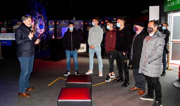 El tècnic Sergi Barjuan i els capitans Arnau Comas, Arnau Tenas, Guillem Jaime i Álvaro Sanz, acompanyats del president del Barça B, Jordi Casals, han conegut tots els detalls del projecte de la mà del director de Patrimoni i Espai Barça, Ramon Ramírez.
