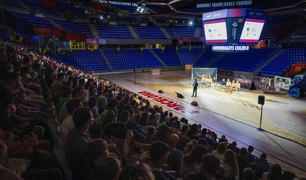 Posteriorment, els pares i mares dels nens i nenes que aquest any prendran part a la Barça Escola Futsal han estat els protagonistes. Després de les introduccions prèvies, el coordinador de l'escola de futbol sala, Manel Quílez, ha explicat quina és la metodologia de la Barça Escola Futsal per a aquest curs 2024/25.