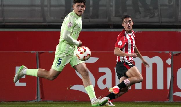 El duel de filials corria el risc de convertir-se en una penitència per als blaugrana, després d'un gran inici dels locals, més endollats i amb confiança que els culers. I, més, veient que la primera ocasió clara de gol no ha trigat molt a arribar, amb un xut d'Olabarrieta que ha fregat el pal, després d'un error en sortida de Mbacke. Semblava qüestió de temps que els biscaïns s'avancessin, i així ha estat. Ho ha fet mitjançant un cop de cap d'Ibai Sanz (1-0, min. 17), que ha fet justícia al que s'estava veient sobre la gespa de Lezama.