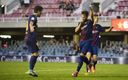 La primera oportunitat clara del conjunt barcelonista ha arribat en el tercer córner a través d’un cop de cap del central Cuenca. Es mostrava sòlid en tasques defensives l’equip de Gerard López, que ha vist com en algun moment s’ha dinamitzat el duel. Perquè una gran aturada d’Ortolà ha estat precedida per un xut de l’extrem Arnaiz.