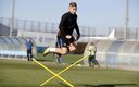 Gerard Deulofeu, Sergi Roberto, Paco Alcácer, Aleix Vidal i Denis Suárez competeixen durant l’entrenament d’aquesta setmana per veure qui és millor xutant en una porteria amb diferents dianes