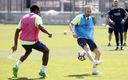 Els jugadors disponibles del primer equip s’han exercitat aquest divendres al camp Tito Vilanova de la Ciutat Esportiva Joan Gamper. A la sessió hi ha estat present també el jugador del Barça B Marlon Santos.