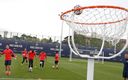 Els jugadors del FC Barcelona han fusionat el futbol i el bàsquet en un divertit entrenament